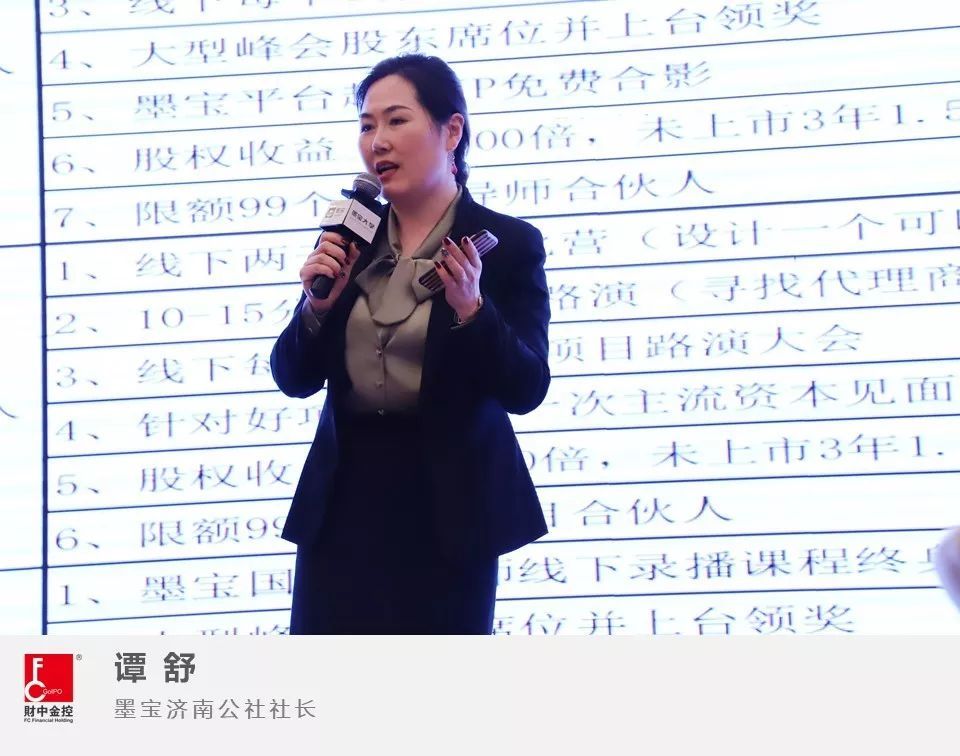 墨米科技秘书处丹妮作为本次峰会的主持人带领大家观看了墨宝企业介绍短片,随后请出本次活动协办方墨宝济南公社社长谭舒,以她服务于大型企业十多年的税务经验,向大家阐述了墨宝创业项目的优势与竞争力。