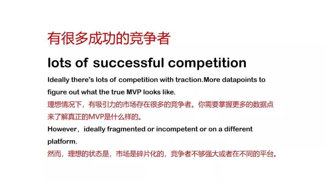 最好的例子就是,市场很大,但是是碎片化的。可能竞争者们不够优秀,或者存在一些结构化和规律性的问题,这样就有空间了。