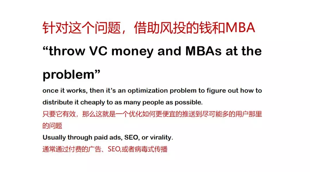 我不是要淡化这一步,而是想说从零到产品-市场匹配部分是如此困难,下一步则比它要简单很多。总之有很多增长方法管用,这些都只是一个优化的问题。