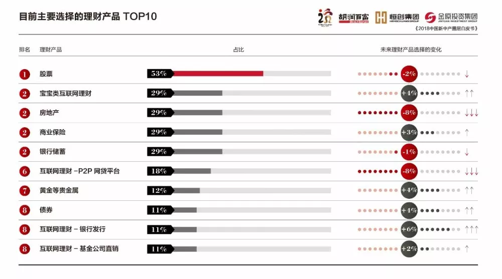 4股票是新中产人群最多选择的理财产品,其次是宝宝类互联网理财、房地产、商业保险和银行储蓄。
